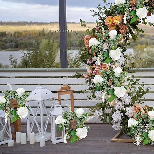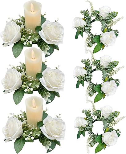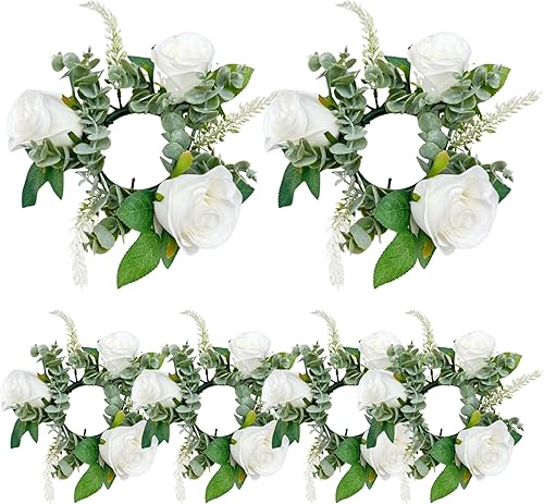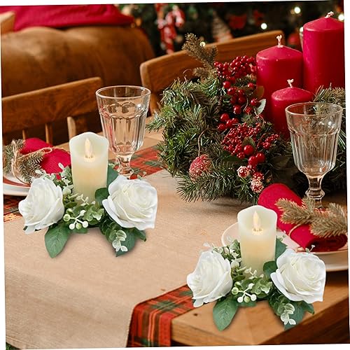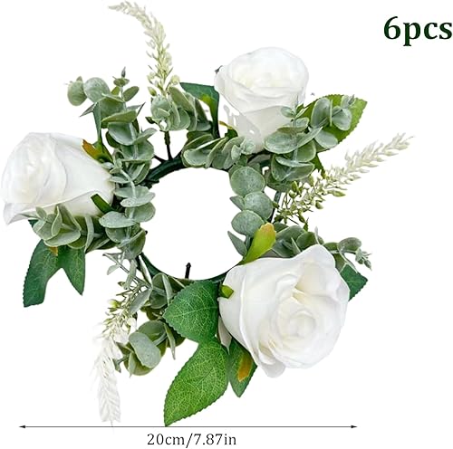 Bougies de Bougies Anneaux 6pcs 7, 9 Pouces artificiels Anneaux de Bougie à Fleurs Roses artificielles pour piliers Petites fleurines Porte-greffes Mariage