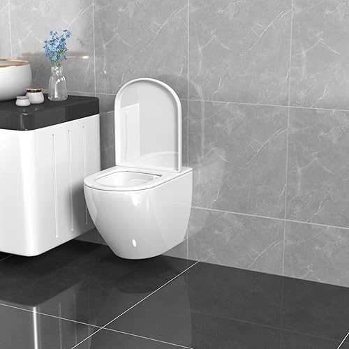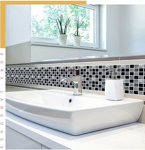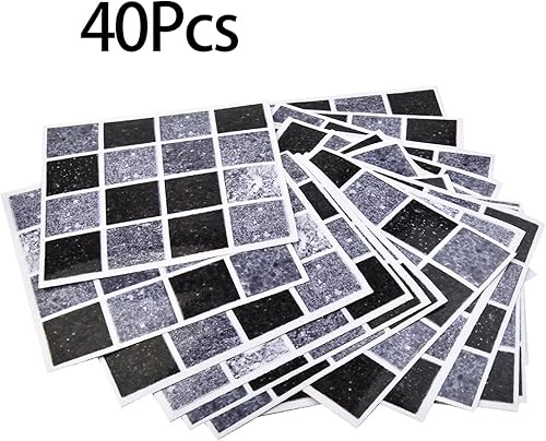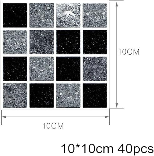 Ranrao Lot de 40 autocollants muraux pour carrelage mural - Effet marbre noir et gris - Carrés autocollants - Étanches - Pour salle de bain et décoration d'intérieur