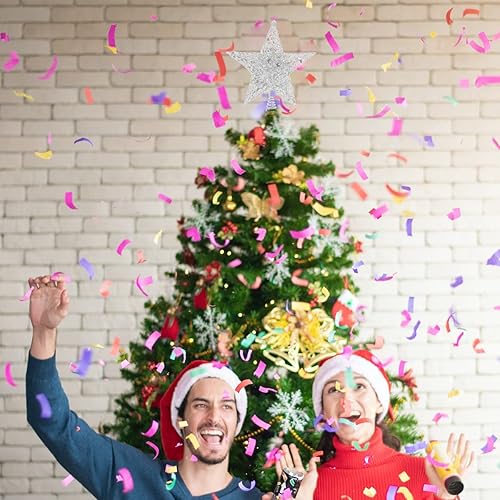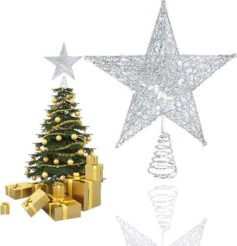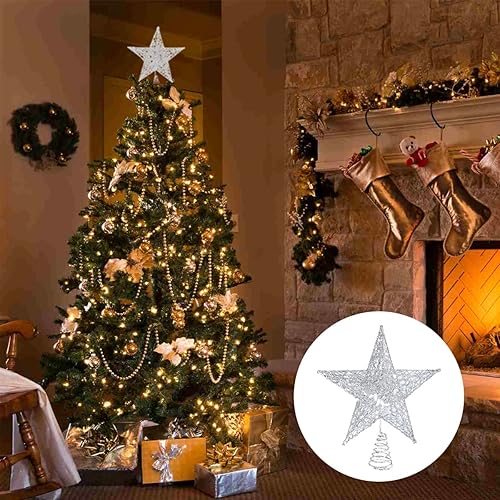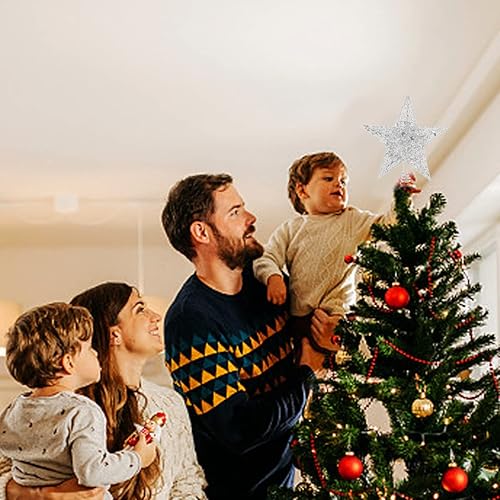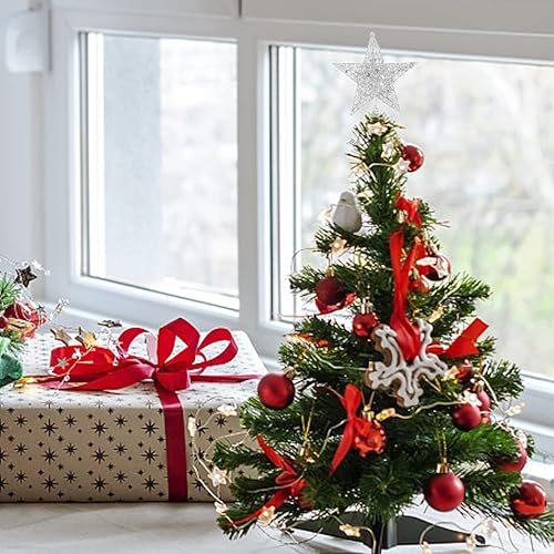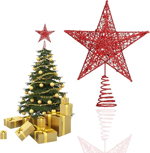 SUNCHE Topper Étoile de Sapin de Noël, Décoration de Noël Étoiles Topper, Étoile en Métal Scintillante, 20 cm Star Treetop, Étoile de Sapin de Noël à 5 Branches, Ornement pour Fête, Maison, Rouge