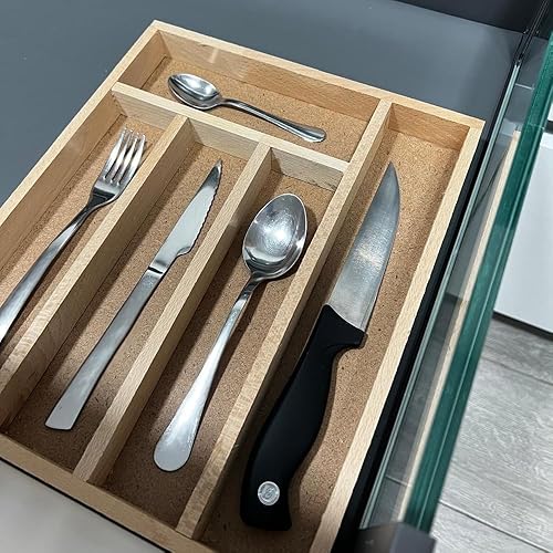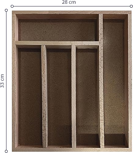 MGE - Plateau À Ustensiles pour Couverts en Bois - Range-Couverts - Organisateur De Tiroir - Boîte De Rangement pour Cuisine - Organisateur de Couvert - 5 Compartiments - 33 x 28 cm