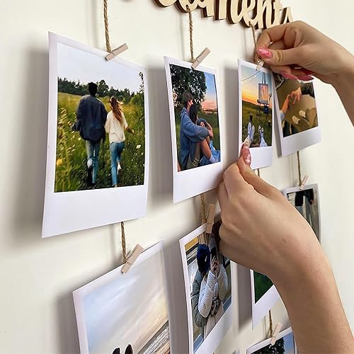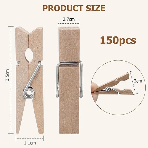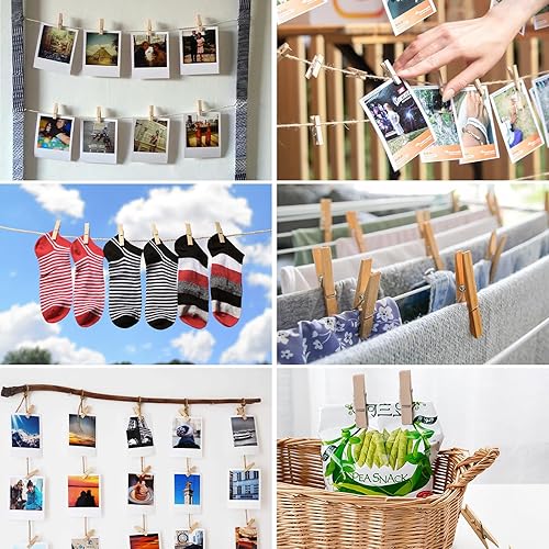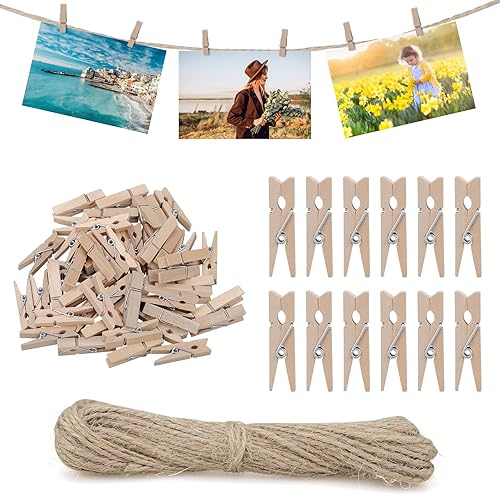 Lot de 150 Mini Pinces à Linge en Bois de 3,5 cm avec Ficelle de Jute de 10 m, Petites Pinces pour Accrocher Photos, Cartes Postales, Vêtements, Décoration DIY