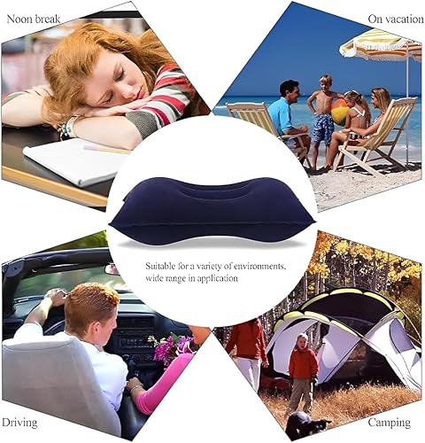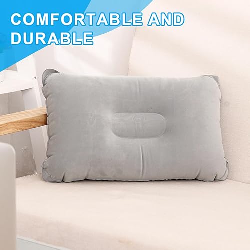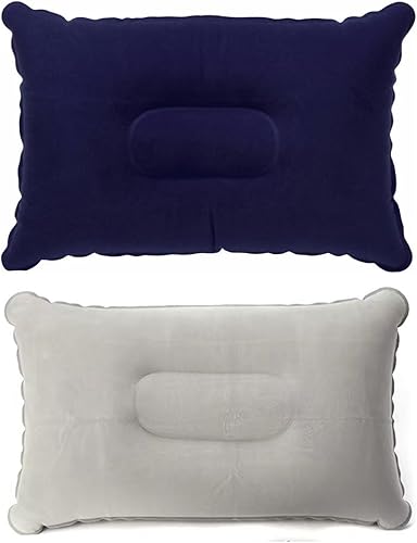 NHPY 2 Pièces Oreiller Gonflable, 33 * 22cm, PVC, Oreiller de Voyage, Camping, Plage, Rectangulaire, Bleu/Gris
