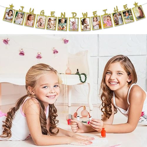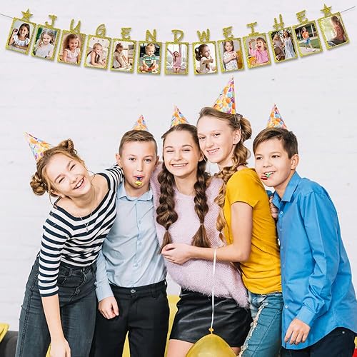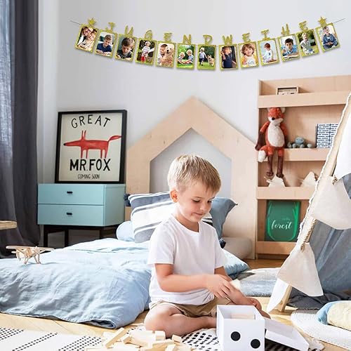 YZROHYI Guirlande Photo Anniversaire,Banderole Photo Pour Fête,Décoration de Dédicace Jeunesse Avec 13 Cartes en Papier Kraft Pour Photos,Présentoir Photo à Suspendre pour Garçons et Filles