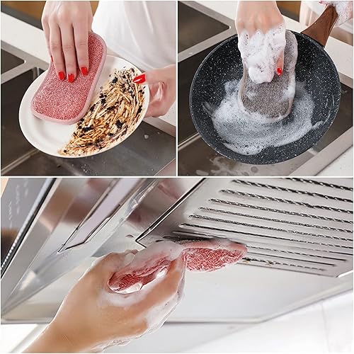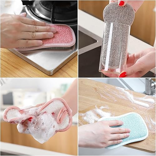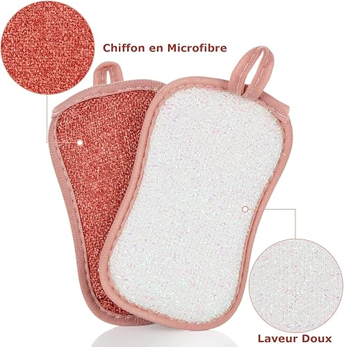 STARVAST Lot de 16 Éponges Microfibres Lavables et Réutilisables, Eponges Lavables Réutilisables Double Face pour Nettoyer la Vaisselle, Poêlons, Evier - 4 Couleurs - Eponges Grattante et Douce