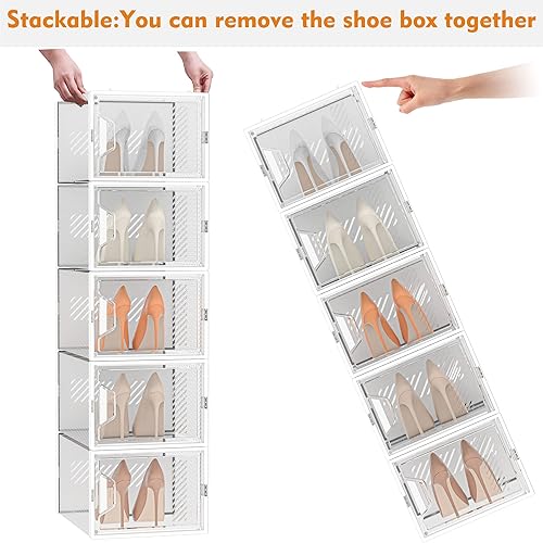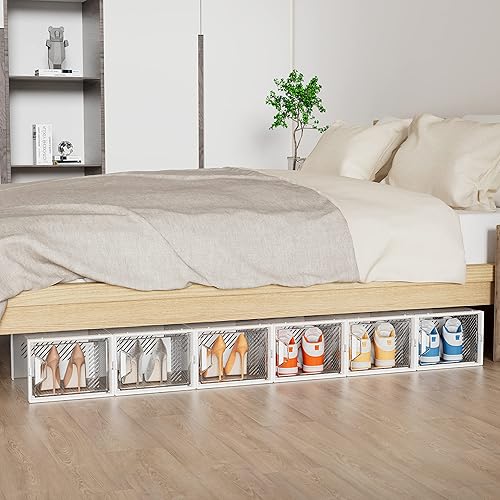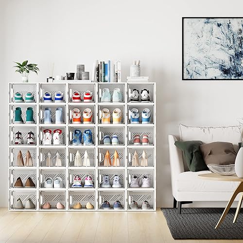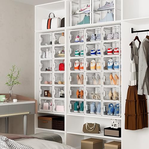 SIMPDIY Boîtes à chaussures,24 pcs boîtes de rangement pour chaussures en plastique transparent empilables,conteneurs pour organisateur de chaussures avec couvercles pour femmes/hommes