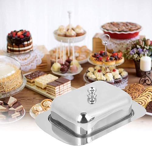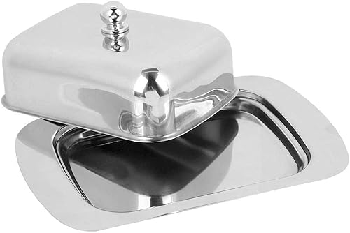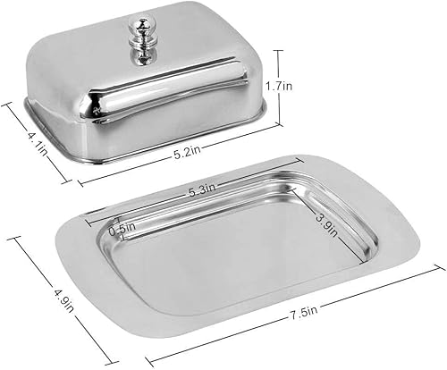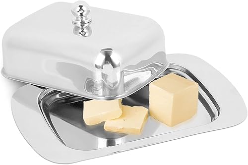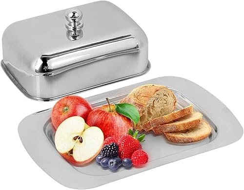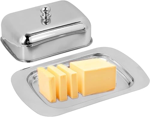 Agatige Beurrier avec Couvercle Inox, 19 x 12.5 x 4.2 cm Argent Conteneur à Beurrier Traditionnel avec Poignée Ergonomique pour Cuisine