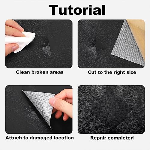 2 Pièces 20 × 30.5 cm Kit Réparation Simili Cuir,Self Adhesive Leather Repair Autocollant Patch Idéal pour Rénovation de Canapé Sac à Main Sac en Cuirb Vestes Sièges de Voiture Meubles (Noir)