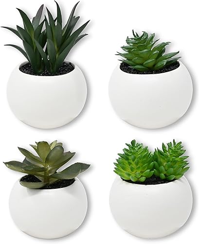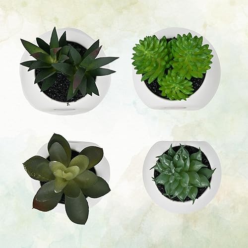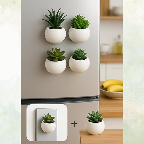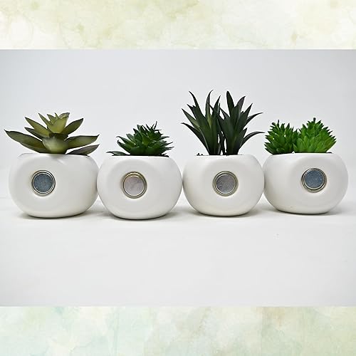 damaloo Lot de 4 plantes succulentes artificielles en pot avec fonction magnétique - Plantes artificielles en plastique - Plantes décoratives pour rebord de fenêtre - Fleurs artificielles vertes