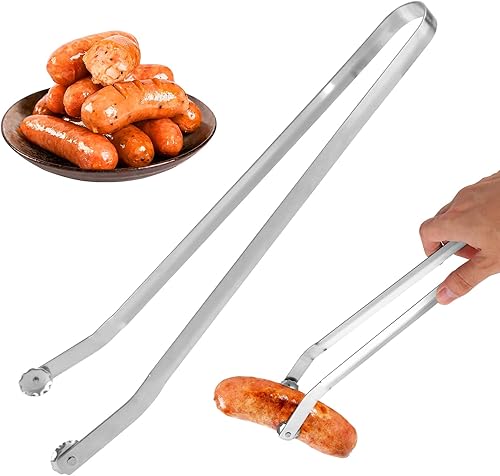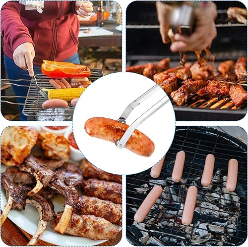 Pince à Retourner les Saucisses pour Barbecue, 38,5cm Pince à Hot-Dog Pince à Aliments Pince de Cuisine en Acier Inoxydable Pince à Steak à Gril à Griller Longue pour la Maison et en Plein Air