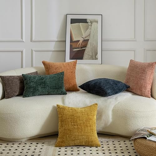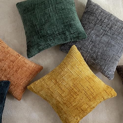 MANDIOO Lot de 2 housses de coussin décoratives carrées texturées en chenille douce et solide pour canapé, sofa, lit, salon, 40,6 x 40,6 cm, gingembre