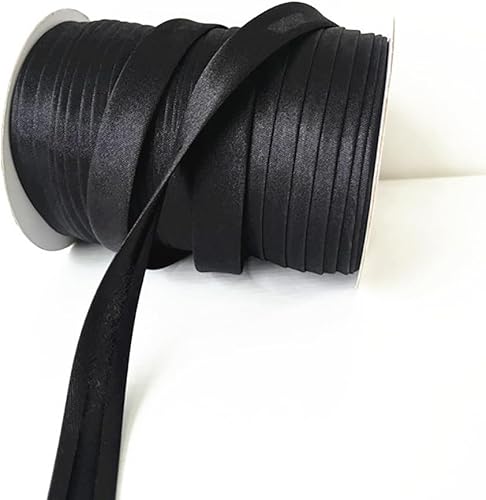 Rouleau de Biais Double pli de 1 cm x 50 m - Ruban de Couture - Ruban de Biais en Tissu - Ruban de Couture Cheongsam - Noir