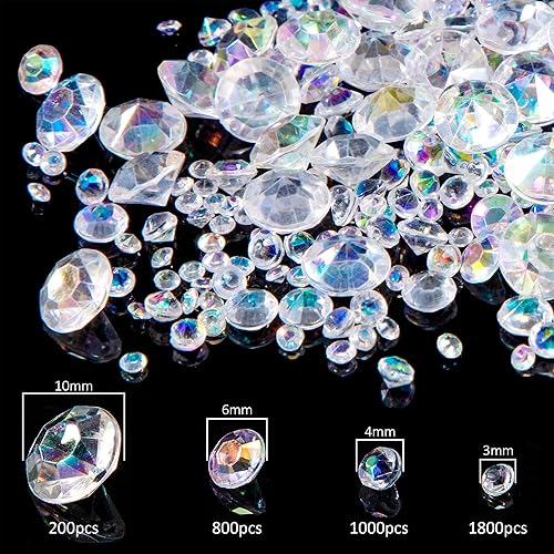 Diamants Décoratifs Diamants en Acrylique Bling Strass pour Fête Mariage Table à Manger 3mm,4mm,6mm,10mm 3800 Pièces AB Couleur