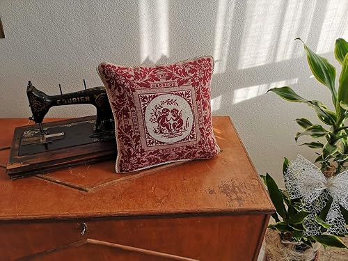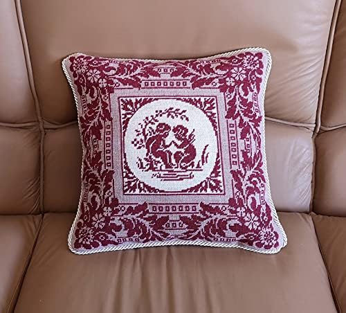 Aidalux Kit coussin à broder au demi-point de croix avec canevas imprimé, fils en coton et dos zippé 003 (rouge), Taille unique