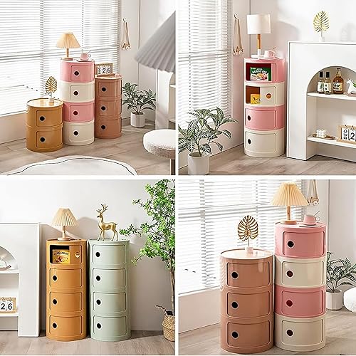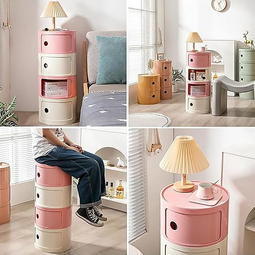 SJIOUEOT Table d'appoint de canapé, Table de Chevet de Style Ins, Organisateur Push-Pull à étagère Ronde, Buffet Multifonctionnel en Plastique (Color : J, Size : 4 Layers)