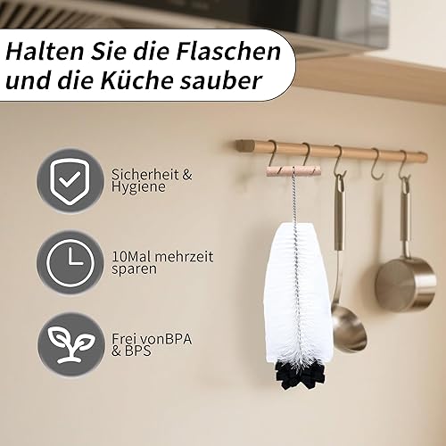 Goupillon Bouteille 35cm, Brosse Dense pour Biberon, Gourde en Verre et Bouteilles Étroites, Nettoyage Profond sans Rayures ni Résidus, Séchage Rapide & Poignée Ergonomique Certifié