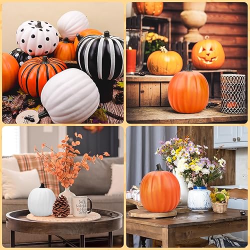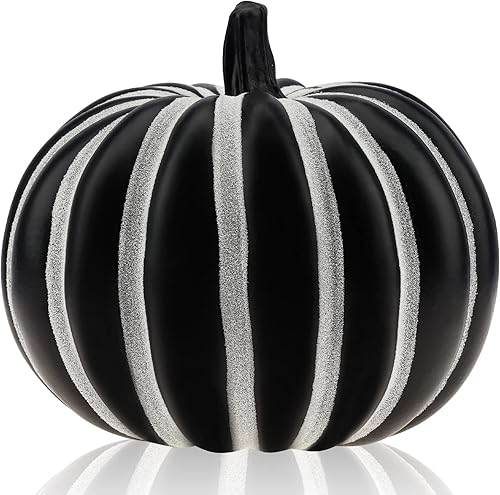 Folmywy Artificielles Citrouilles Faux 20.5cm Simulation Légume Décoration Mousse Noir Halloween Table Thanksgiving Jour de Automne Fête Porche Mariage Décor