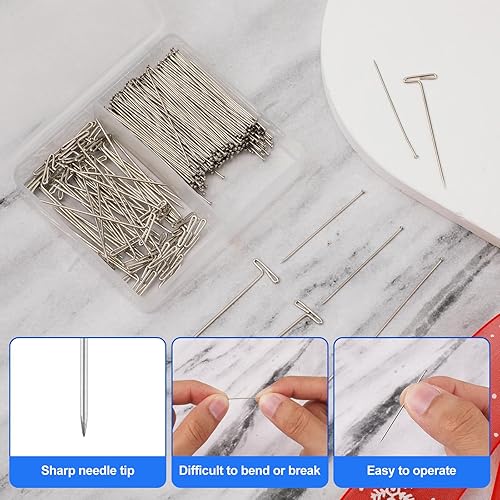 350pcs Épingles Droites Fines & Épingles en T, Épingles à Tête Plate de 3,6cm & T Pins de 3,8cm Épingles Fabrication Bijoux pour Boucle d'oreille Pendentif Fabrication Bijoux Artisanat Couture