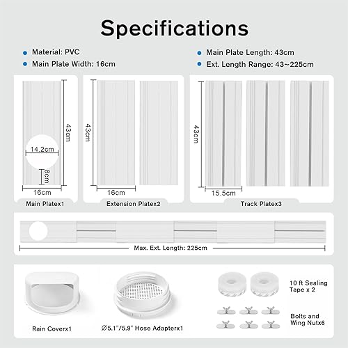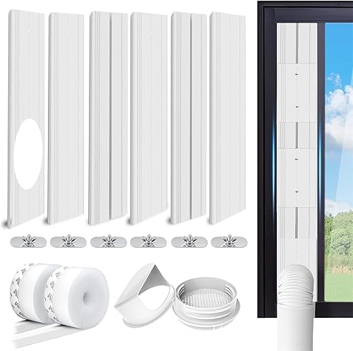 LINGKY Kit de Fenêtre Climatiseur Mobile, Kit de Glissière de Fenêtre Climatiseur Portable, Kit Calfeutrage Fenêtre Coulissante Climatiseur Mobile avec Adaptateur de Tuyau Universelle