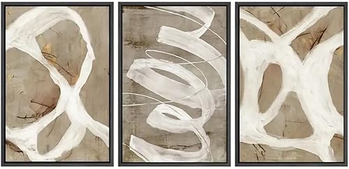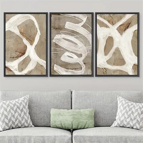 CWBLYZ Décoration Murale sur Toile Avec Traits de Peinture Pastel Blanc et Marron- Illustrations Abstraites- Art Moderne Nordique Chic pour Salon Bureau Chambre à Coucher-50 * 70Cm*3 (Sans Cadre)