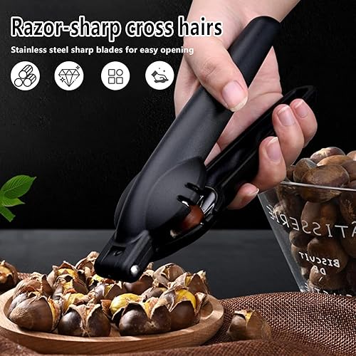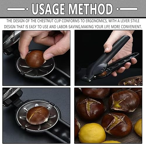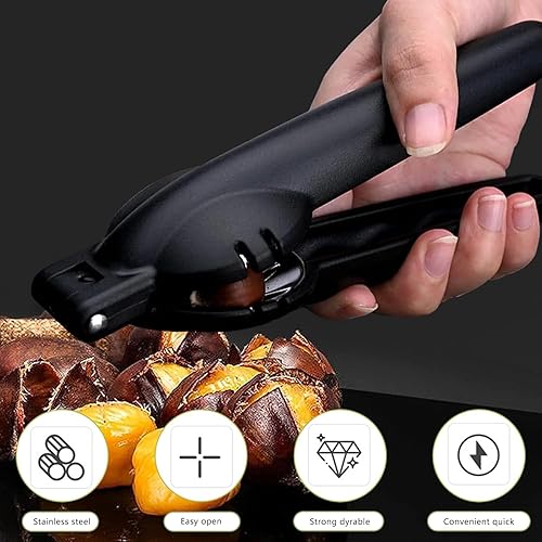 May Huang Châtaigne Clip, Pince a Chataignes, Inoxydable Pince à Châtaigne, Ouvre Chataigne, Multifonctionnels Outil de Cuisine pour Châtaignes pour Châtaignes, Noisettes et d'autres (Noir)