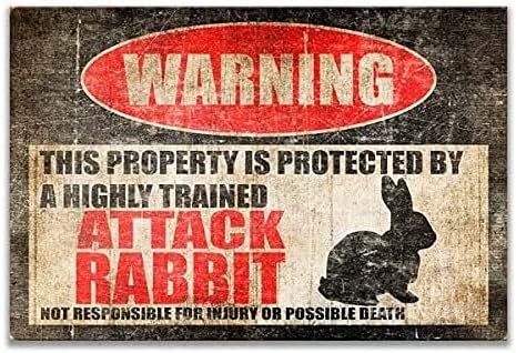 Plaque Metal Attention Lapin, Cette Propriété Est Protégée Par Des Lapins D'Attaque Hautement Entraînés. Plaque Étain Signe Drôle Affiche Étain Vintage Plaque Deco Metal Pour Maison Hôtels S