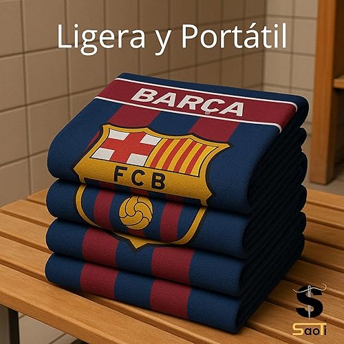 SaoTi Serviette de plage Barcelone de football en microfibre Motif classique Bleu et grenat 70 x 140 cm
