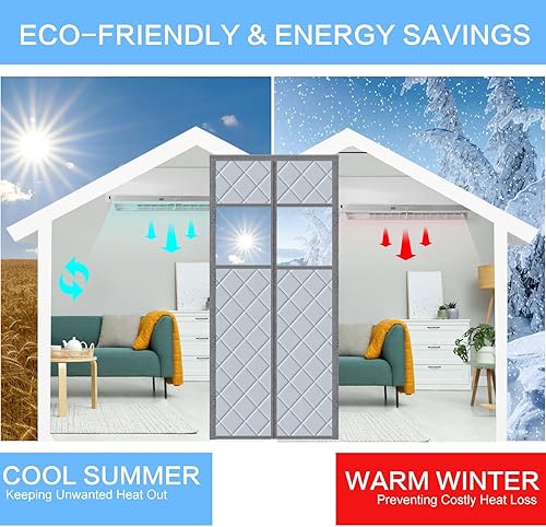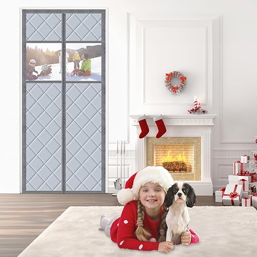 Rideau de protection thermique magnétique pour portes - 100 x 220 cm - Protection thermique contre le froid et la chaleur - Imperméable - Coupe-vent - Convient aux animaux domestiques - Avec fenêtre