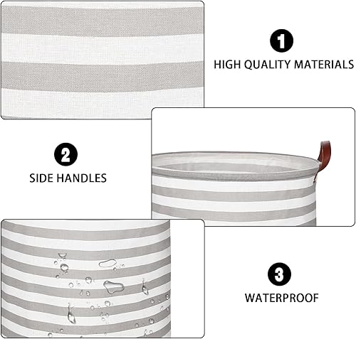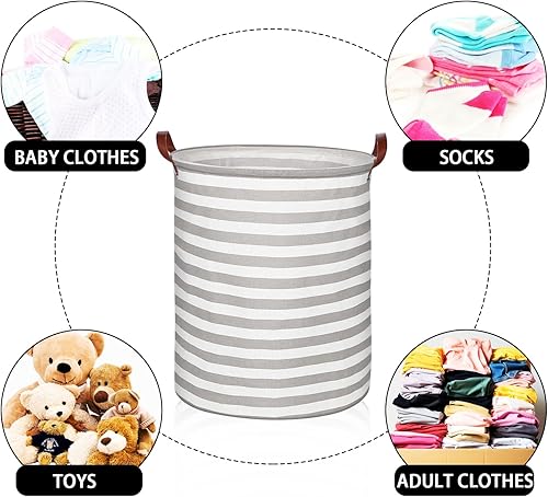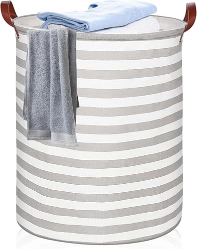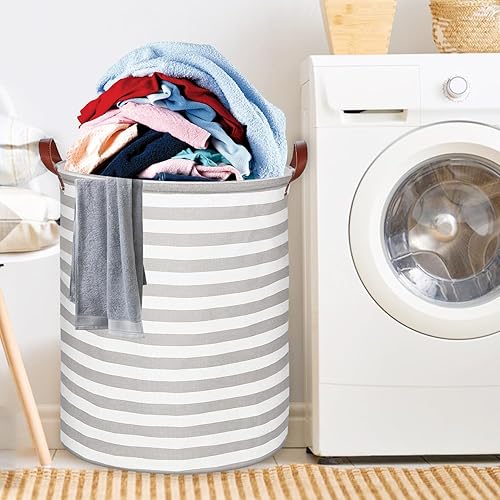RYAN Grande Panier à Linge Pliable 65L Corbeilles à Linge Tissu avec Poignées pour Chambre Salon Chambre D'enfant Salle de Bain et Voyage (Gris Rayé)