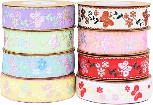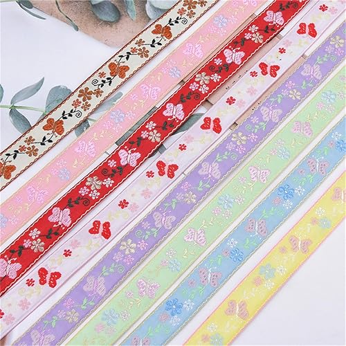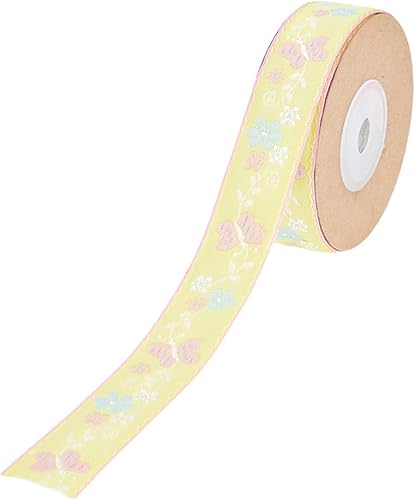 X-Institute Ruban en polyester avec fleurs et papillons pour fabrication de bouquets de mariage, couronne, emballage, emballage cadeau, fait à la main