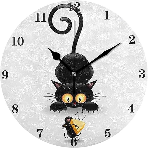 452 Ronde Pendule Murale Petite Souris Chat Mignon Noir Cuisine Horloge Silencieuse Horloge Vintage Horloge Murale pour Café Bureau Chambre