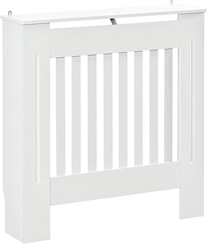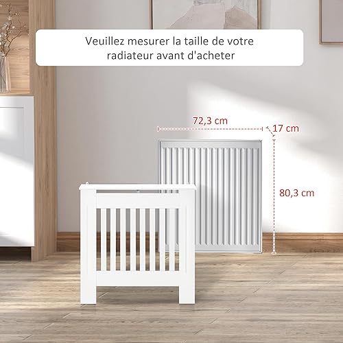 HOMCOM Cache-radiateur couverture radiateur grille d'aération verticale à lattes 78L x 19l x 81H cm en bois Blanc