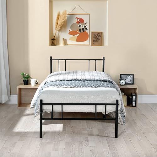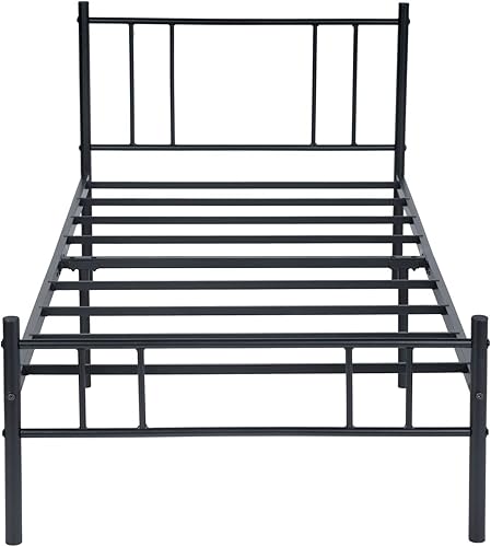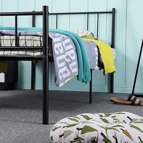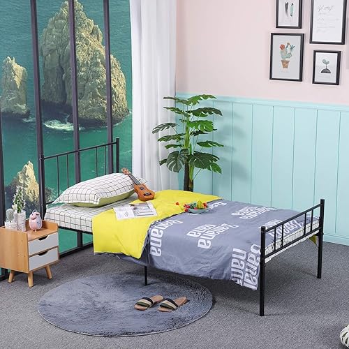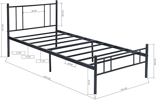 H.J WeDoo Moderne Lit Simple Cadre de lit en Métal Stable Cadre de Structure Métallique Pas de Bruit pour Matelas 90 x 190 cm, Noir