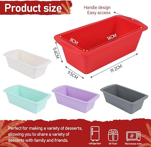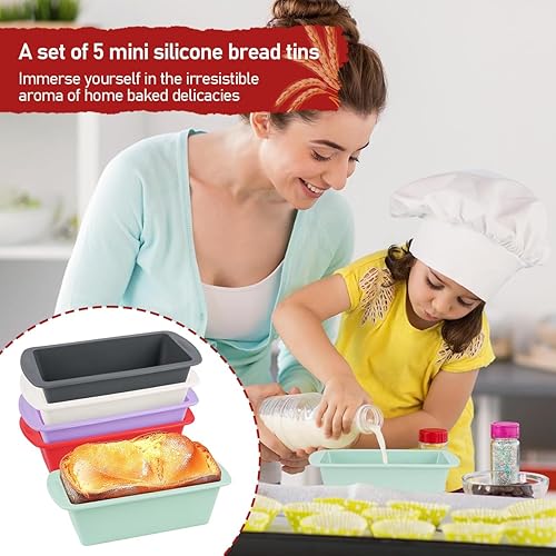 KUDLE 5 Pièces Moule à Cake Silicone, Mini Moule à Pain en Silicone, Moule Silicone air fryer, Rectangulaires Moules à Gâteaux, Moule à Pain Antiadhésif à Démoulage Rapide pour Four, Friteuses à Air