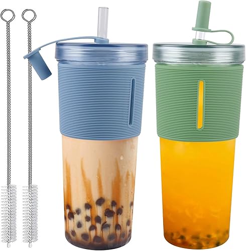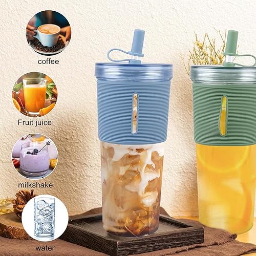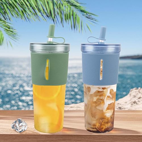 BAIFULAI Gobelets Avec Couvercle Et Paille: 2 Pièces Gobelets en Plastique ABS Antidérapant, Étanche pour la Mobilité, Idéal pour Café Et Jus (700ml, Vert+Blue)