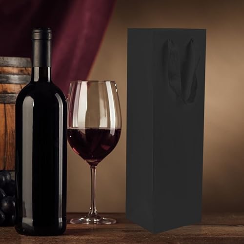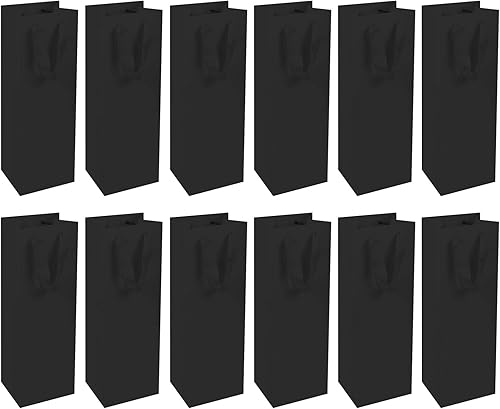 12pcs Sacs Cadeaux Pour Vin, Un Sac à Vin, Papier Kraft Pochettes Sacs Cadeaux Bouteilles de Vin, Pochettes Cadeaux Sacs Vin avec Poignée, Sacs à Vin en Papier Kraft Pour Anniversaire,Fête,Noël (Noir)