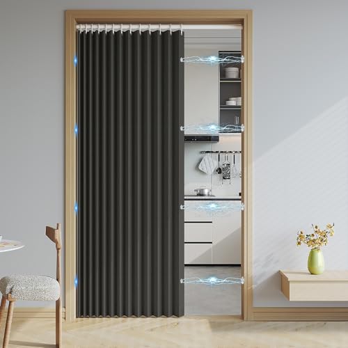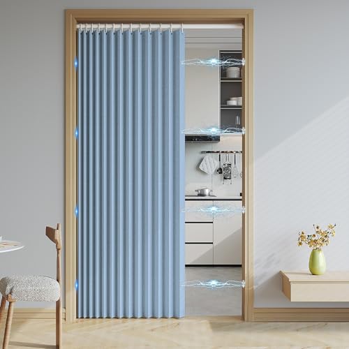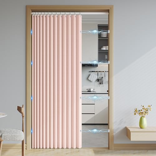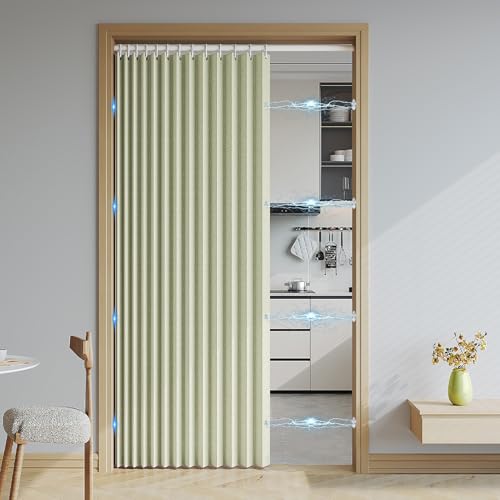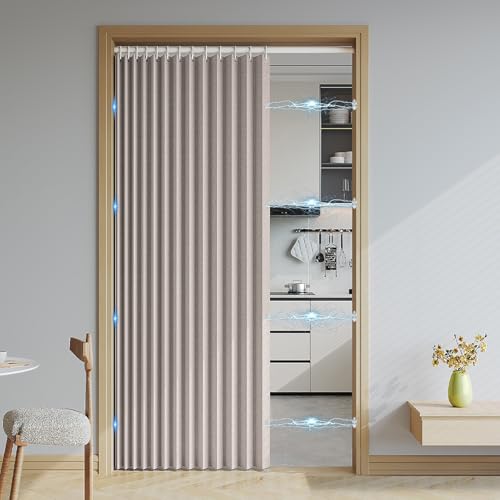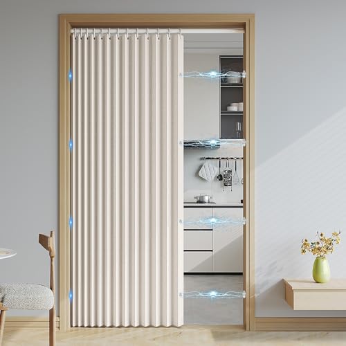 Haoyunll Rideaux Occultants Magnétique Isolant, Anti Froid et Chaleur, Rideaux Accordéon Invisibles pour Porte D'entrée, Salon, Placard, Chambre, 220 G/M², Beige, 80x180cm