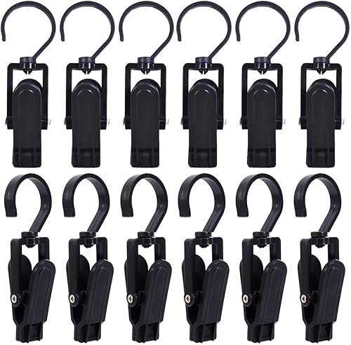 BZKSER 12 pcs Plastique avec Pince Crochet Accrocher, Plastique avec Pince Crochet Rotatifs, Portable Blanchisserie Crochet, pour Vêtements, Rideaux, Salle De Bain,Chapeau, Feuilles, Serviette