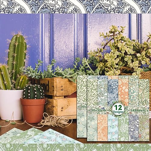 Papier de scrapbooking vintage double face - 30 x 30 cm - 12 motifs - 24 feuilles de fleurs - Papier décoratif pour journal, scrapbooking, album photo DIY