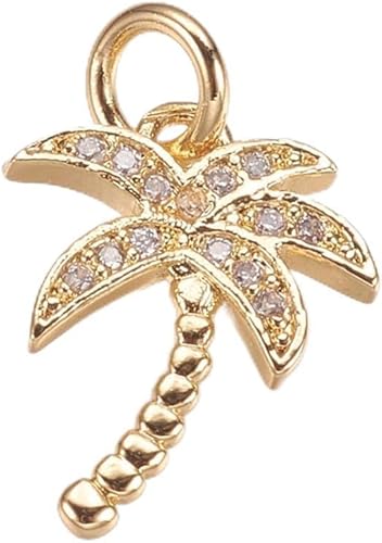 Clotiry Lot de 5 pendentifs en laiton et oxyde de zirconium en forme de cocotier doré pour fabrication de bijoux, Métal non précieux