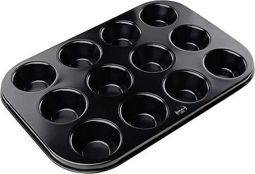 Dr. Oetker - Moule à muffins/cup cake sucrées ou salés, Tradition, en aluminium haute épaisseur revêtue de revêtement antiadhésif (Couleur : noir) quantité: 1 pièce.