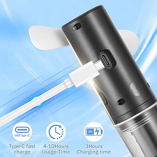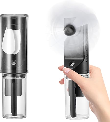 JIZZU Ventilateur Brumisateur Portable, Mini Ventilateur Manuel Rechargeable, Petit Ventilateur Avec 4 Niveaux de Réglage les Voyages, Bureau à Domicile, Camping, l'extérieur(Noir)