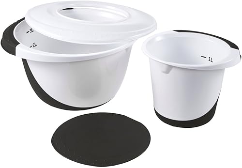 keeeper Set de Saladiers 4 en 1, Avec Protection anti-éclaboussures et Spatule, Antidérapant, Camilla, Ø 27 x 15 cm + Ø 18 x 14 cm, 1,5 + 3,5 L, Nordic Blue