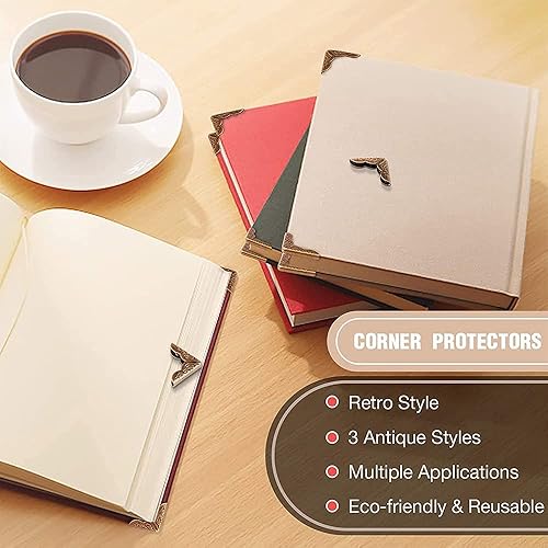 SDFAA 120 Pièces Coin Livre Vintage, Album Photo Coins Décorations, Protecteurs Coin Livre Bronze, Coin Protection Album Photo en Bronze Décoratif Vintage, Album Photo, Livres (3 Modèles)