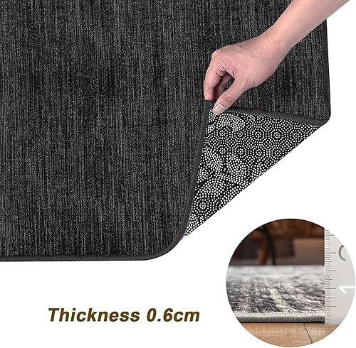 QQrunner Tapis Passage Couloir antidérapant 60x250cm Lavable Noir Moderne Abstrait Tapis au Metre pour Cuisine Chambre Salon, Matière Polyester, Largeur 40-120cm Breit