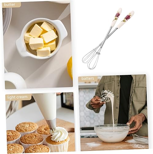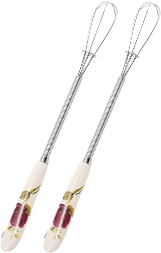 Cabilock 2 Pièces lait petit batteur à oeufs inoxydable agitateur pour Pâtisserie mousse batteurs mélangeur d'oeufs de cuisine Batteur à œufs Outils de cuisine oeuf manuel céramique