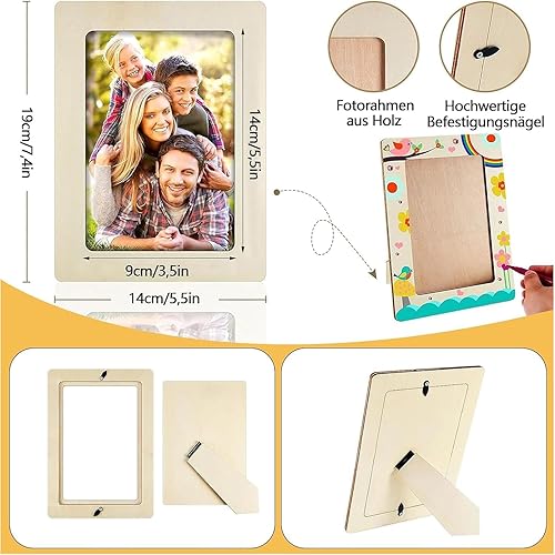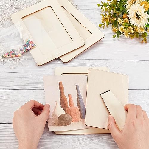 Cadre Photo en Bois 6 Pièces,Cadres Photo en Bois de Bricolage, Projets de Peinture de Bricolage, Ensemble de Cadres Artisanaux Rectangulaires, pour Affichage de Table et Bricolage Artisanal