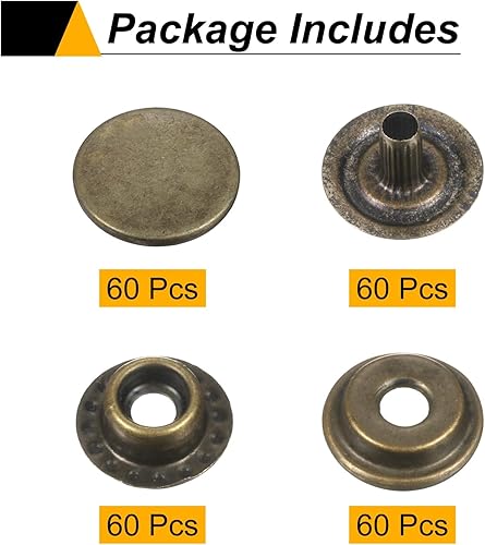 sourcing map Lot de 60 boutons pression 17 mm en alliage pour sacs, cuirs, bateaux, toile, bronze
