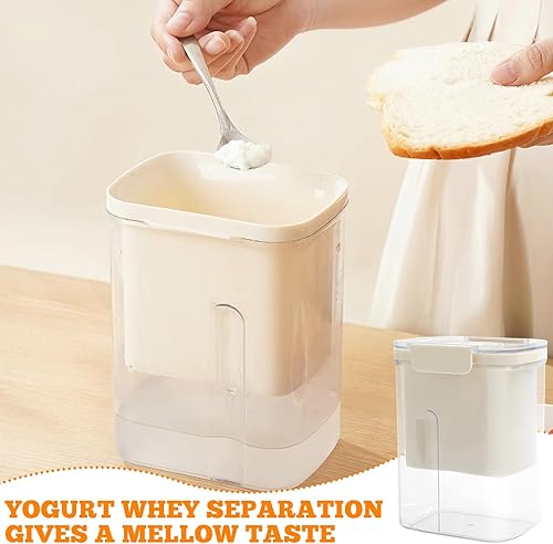 PRITOK Passoire à yaourt grecque avec couvercle : séparateur de lactosérum lavable, yaourtière avec tamis en filet, filtre à yaourt réutilisable pour filtrer le jus, le lait, filtre fin avec design de