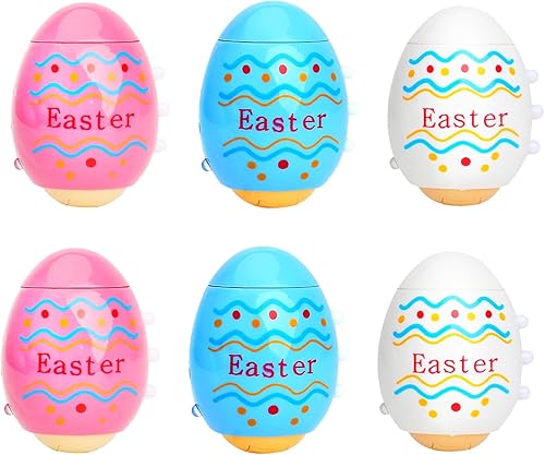 Oeufs de Pâques Toupies D'éveil Jouets, 6 PCS Gyroscopiques avec Lumières LED et Musique Jouets, Kit de Faveurs de Jeux de Fête Pâques Décorations Remplisseurs Cadeau pour Enfants 3+Ans