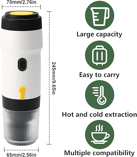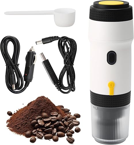 Machine à espresso électrique portable, petite machine à espresso auto-chauffante de voyage (rechargeable USB/ 12V voiture petit voyage), compatible avec capsule NES/DG& café moulu, réservoir de 60ml